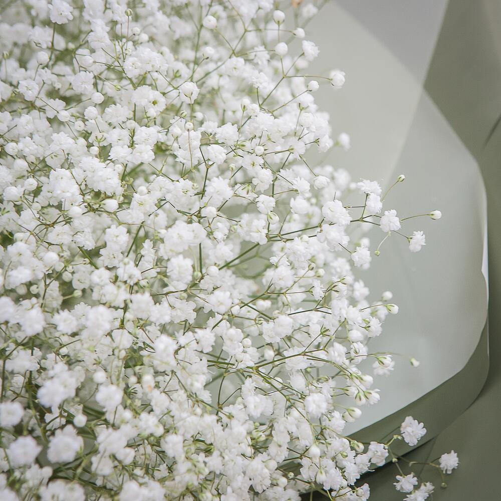 “Сиреневый туман” – композиция из гипсофилы в шляпной коробке