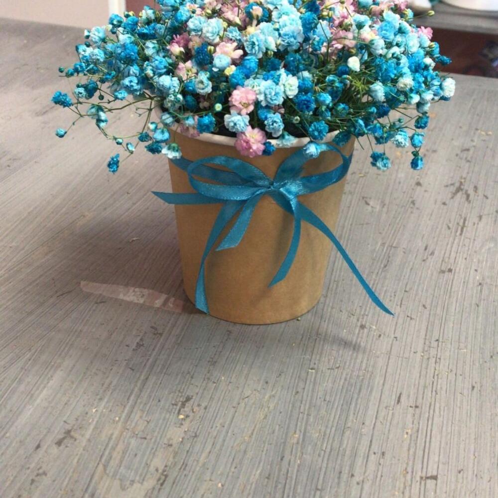 Лента атласная – 1 шт.Оазис флористический – 1 шт.стакан кофейный – 1 шт.гипсофила радужная – 2 шт.