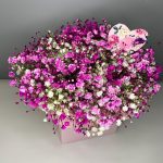 “Сиреневый туман” – композиция из гипсофилы в шляпной коробке