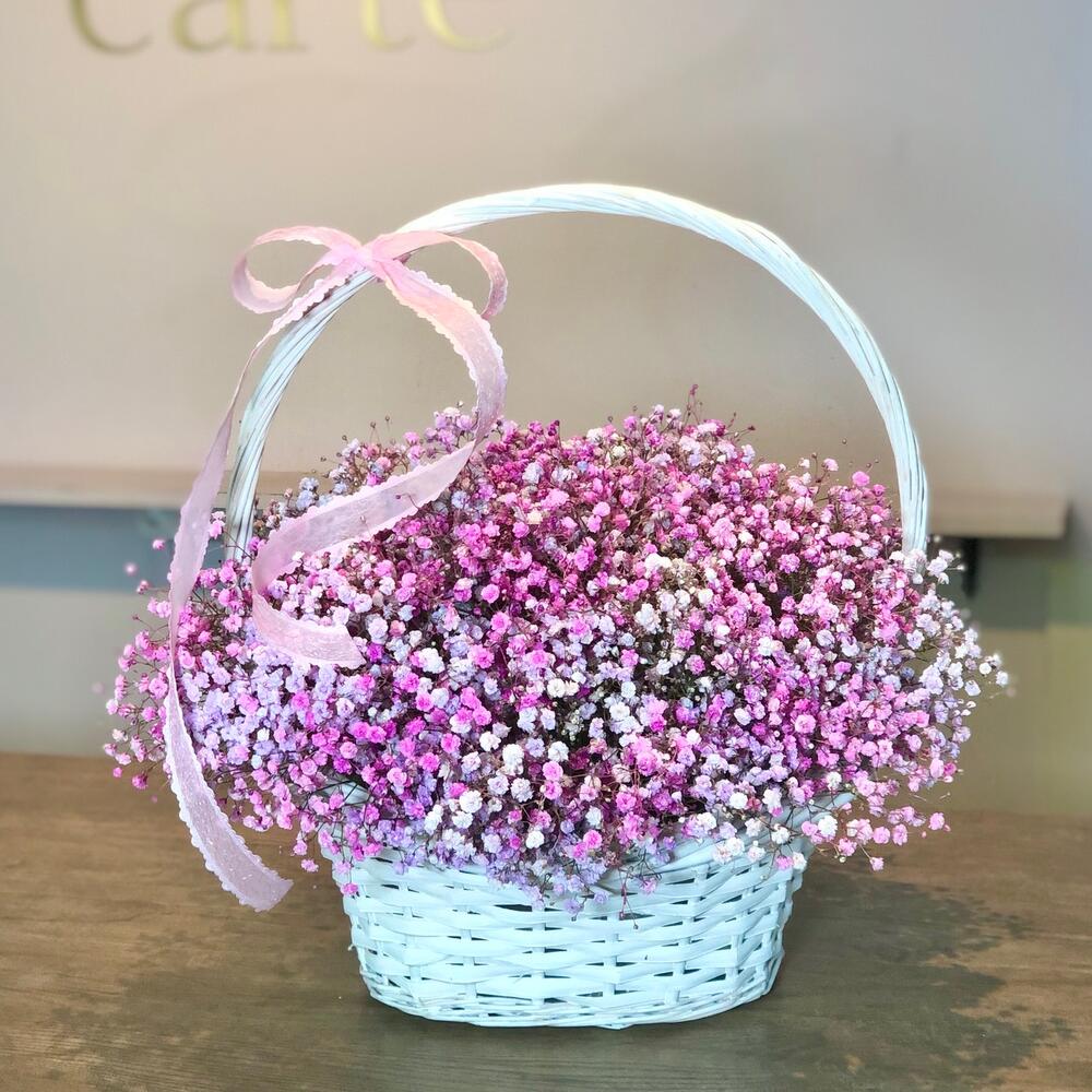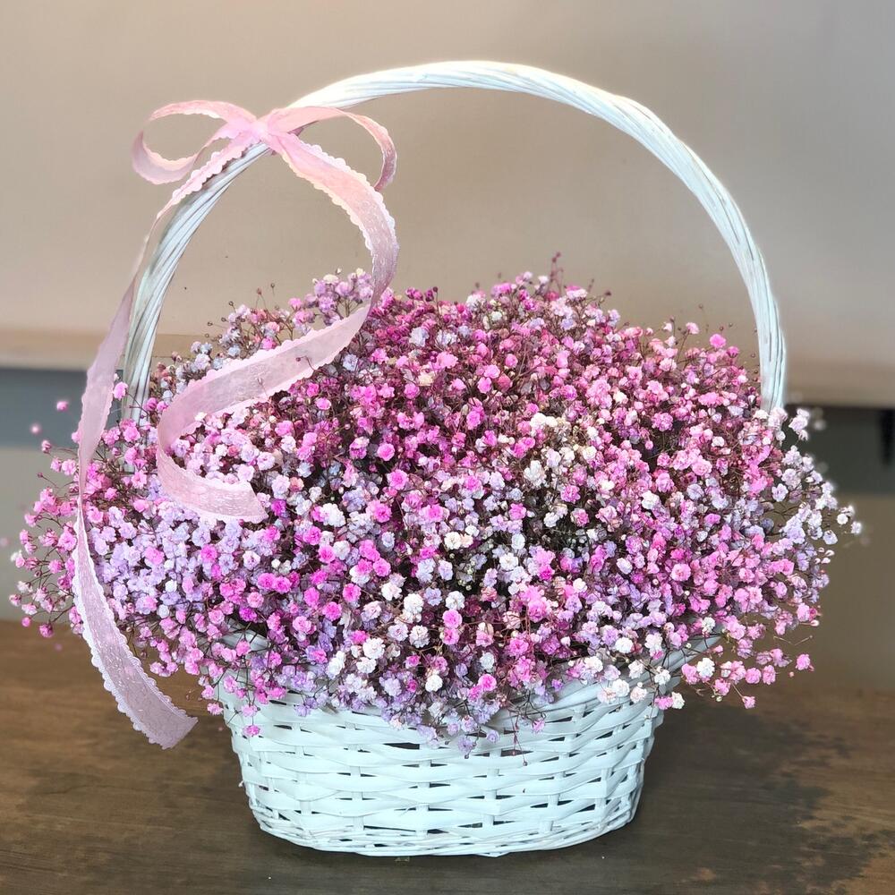 Корзина плетеная – 1 шт.Оазис флористический – 1 шт.Гипсофила – 21 шт.Лента – 1 шт.