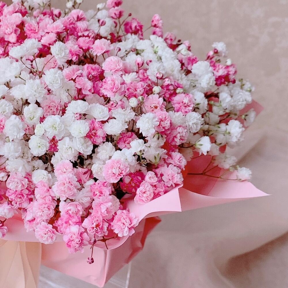 Лента атласная – 1 шт.Флористическая губка – 1 шт.Гипсофила розовая – 2 шт.гипсофила белая – 1 шт.