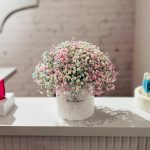 “Сиреневый туман” – композиция из гипсофилы в шляпной коробке
