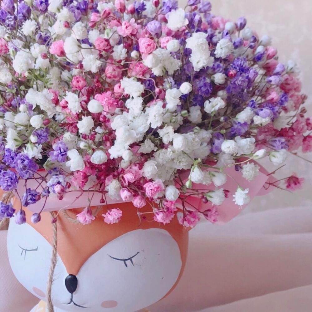 Радужная гипсофила в кашпо из керамики «Лисичка»