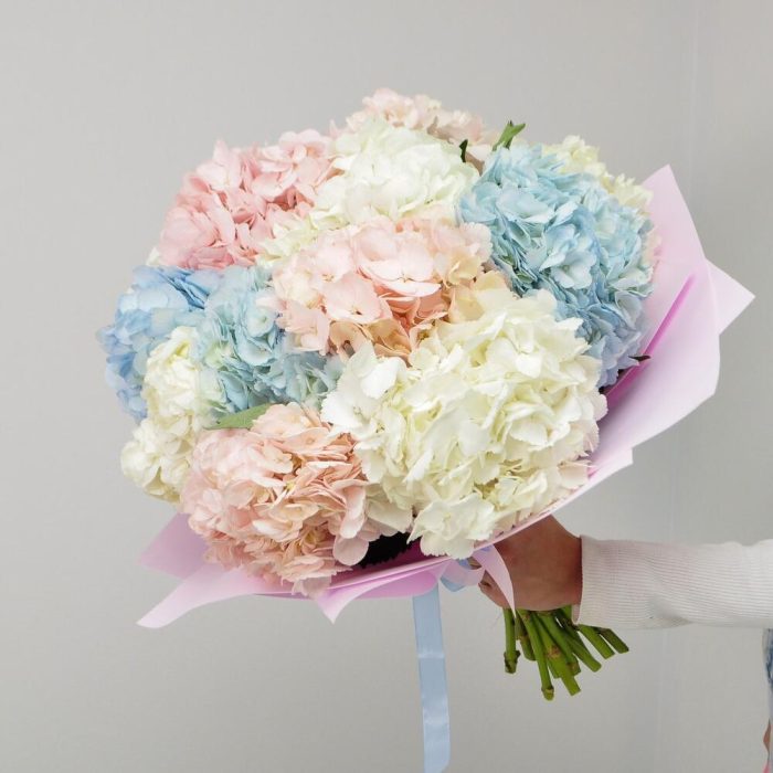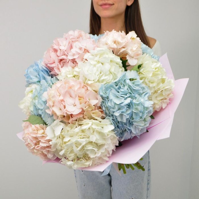 Гортензии, Кустовые розы, Пионовидные розы, Розы