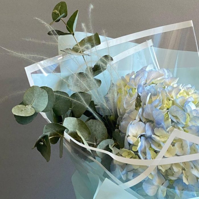 Гортензия – 1 шт.Эвкалипт – 1 шт.Упаковка дизайнерская – 1 шт.Стифа – 1 шт.памятка по уходу и средство для продления жизни цветов – 1 шт.