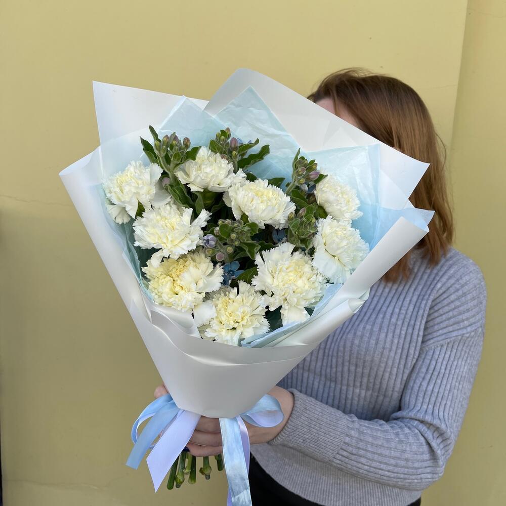 Букет 25: монобукет из кремовых гвоздик