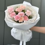 Букет Брют из 9 персиковых и розовых гвоздик