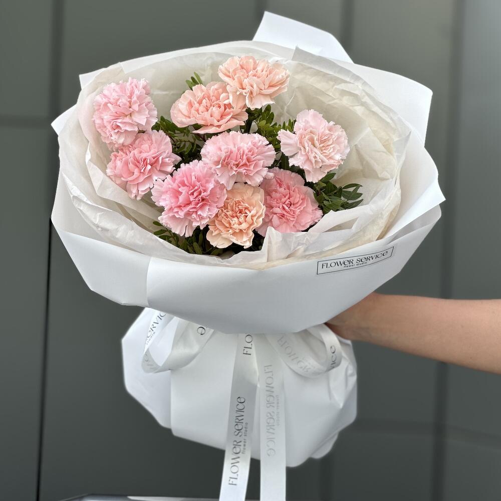 Гвоздика сортовая – 9 шт. Писташ – 2 шт. Оформление – 1 шт.
