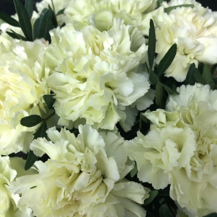 Диантус – 15 шт.Коробка шляпная – 1 шт.Оазис флористический – 1 шт.Фисташка – 2 шт.