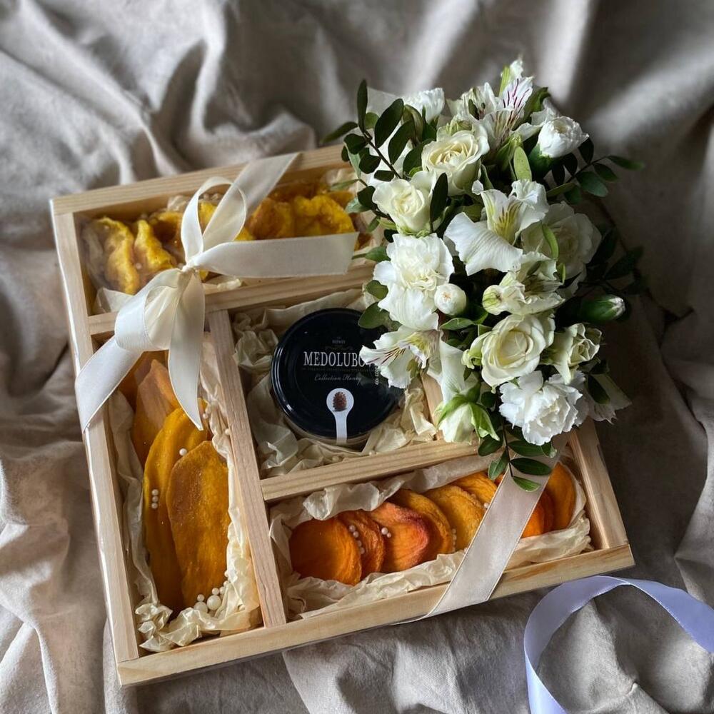 Подарочный набор из роз, сухофруктов и мeда