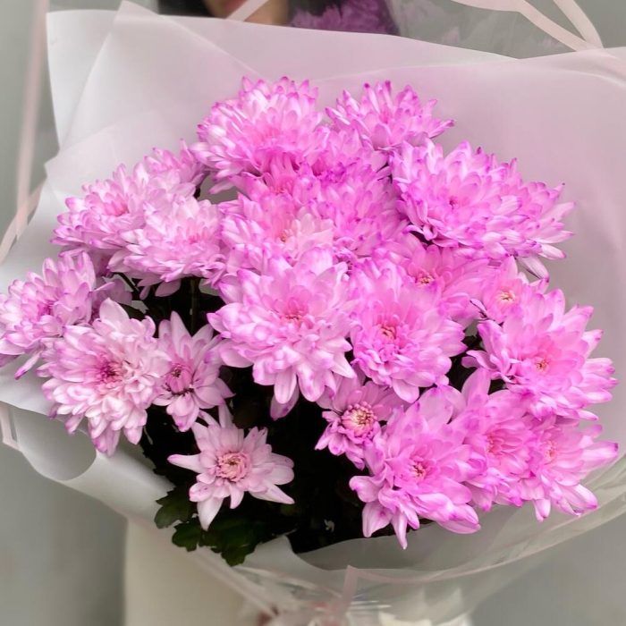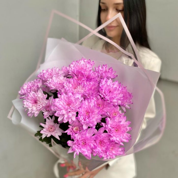 Хризантема кустовая – 5 шт.Лента атласная – 2 шт.Упаковка дизайнерская – 4 шт.
