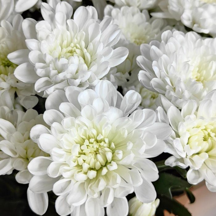 Лента атласная – 1 шт.Хризантема кустовая белая – 11 шт.Упаковка дизайнерская – 1 шт.