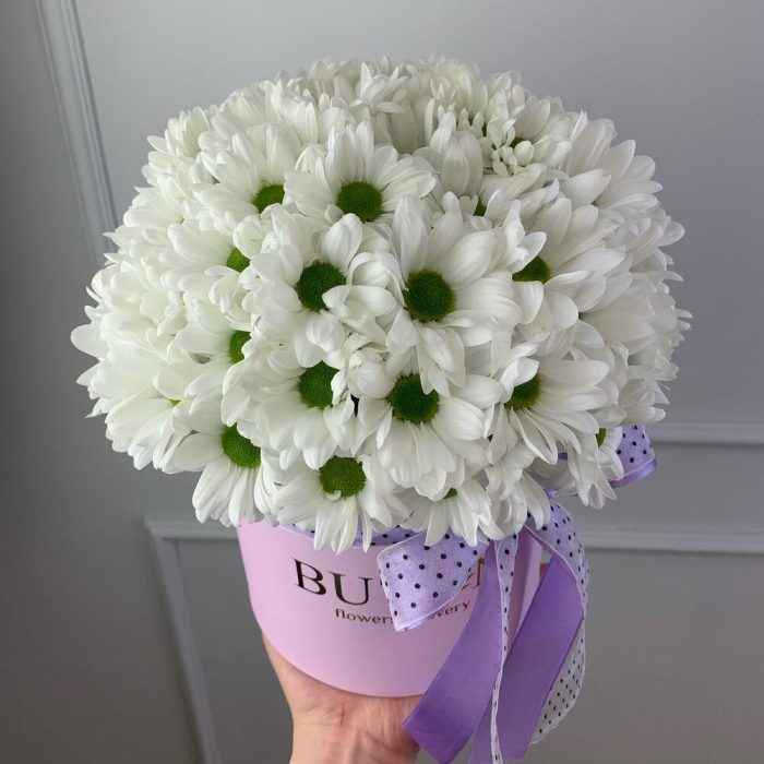 “Сиреневый туман” – композиция из гипсофилы в шляпной коробке