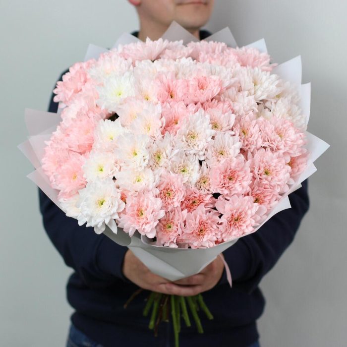 Хризантема кустовая – 15 шт.Лента атласная – 1 шт.Упаковка дизайнерская – 4 шт.