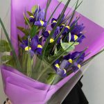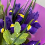 Букет из ярких фиолетовых ирисов и стойкой альстромерии