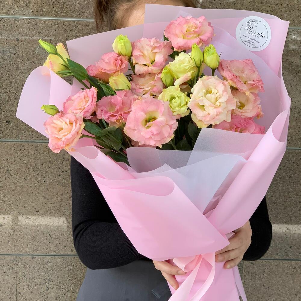 Альстромерии, Гвоздики, Кустовые розы, Лизиантусы, Розы, Хризантемы