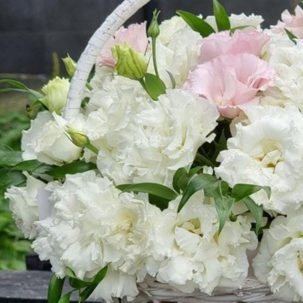 Корзина с лизиантусом “Воздушная нежность”