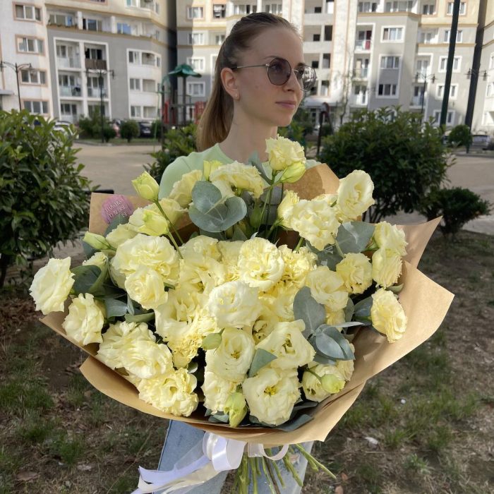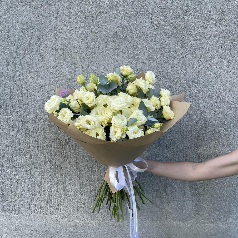 Монобукет из эустомы – это нежный и воздушный букет, созданный специально для того, чтобы подчеркнуть красоту и изящество этого прекрасного цветка. В букете используется эустома и немного эвкалипта, что придает ему особую элегантность и очарование.