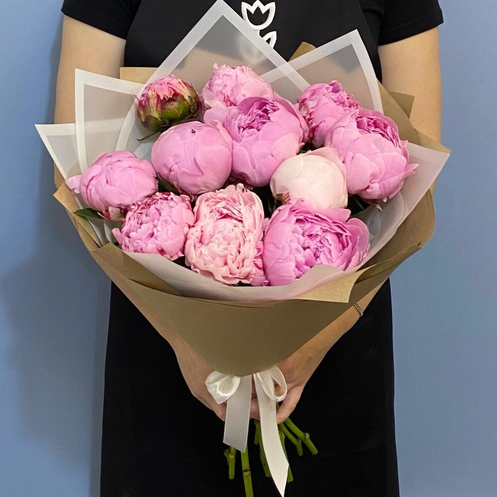 Лента атласная – 1 шт.Пион Сара Бернар – 11 шт.Упаковка крафт – 1 шт.