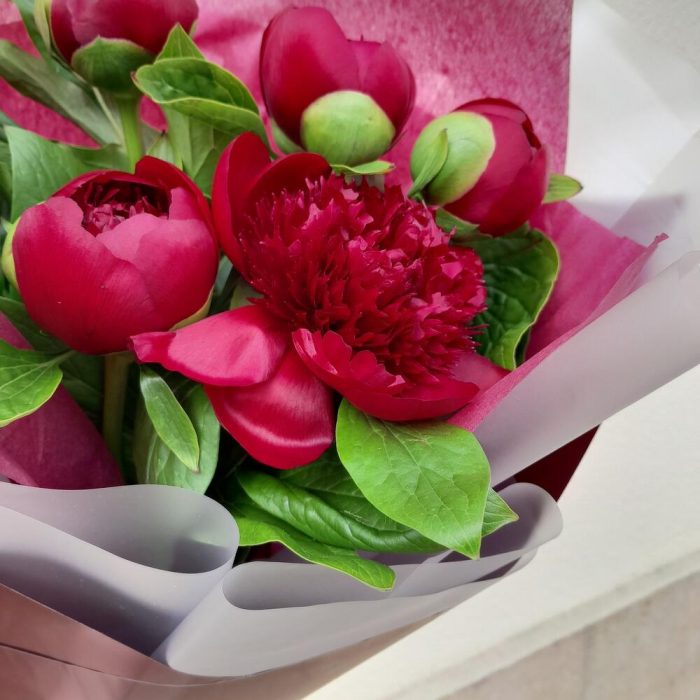 Букет вишнёвых пионов