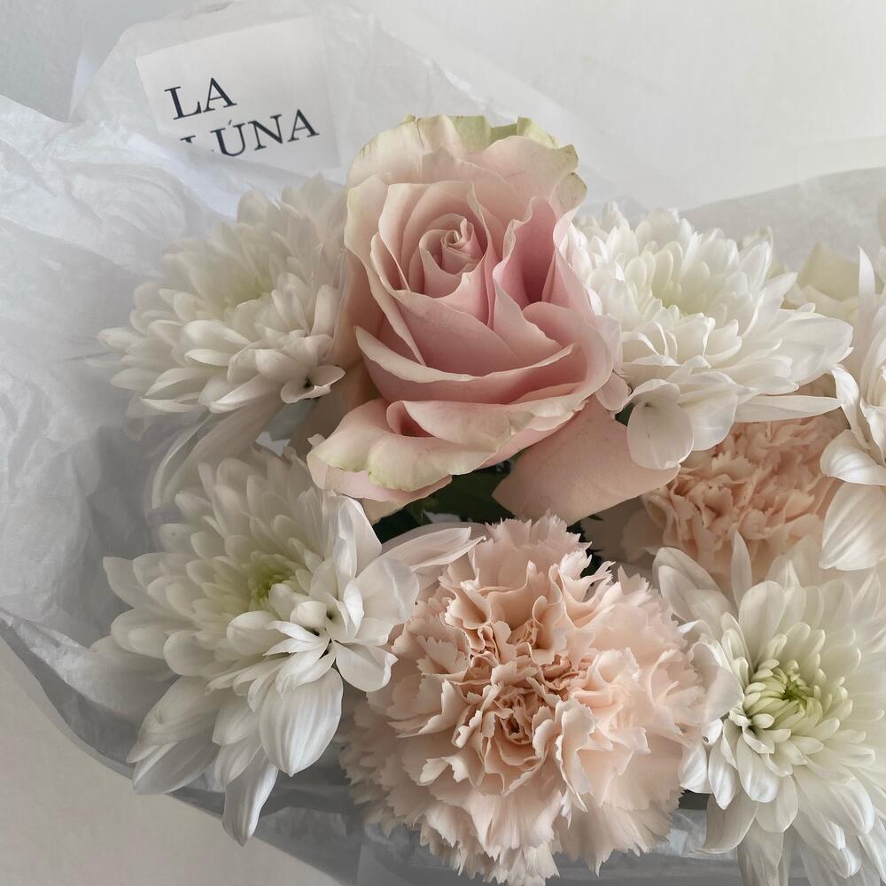 Гвоздика кремовая – 2 шт.Хризантема кустовая – 2 шт.Лента атласная – 1 шт.Упаковка дизайнерская – 2 шт.Кризал (подкормка) – 1 шт.Роза pink mondial – 2 шт.гвоздика белая сортовая – 2 шт.инструкция по уходу за цветами – 1 шт.аквапак с водой – 1 шт.роза playa blanca – 2 шт.транспортировочная упаковка – 1 шт.