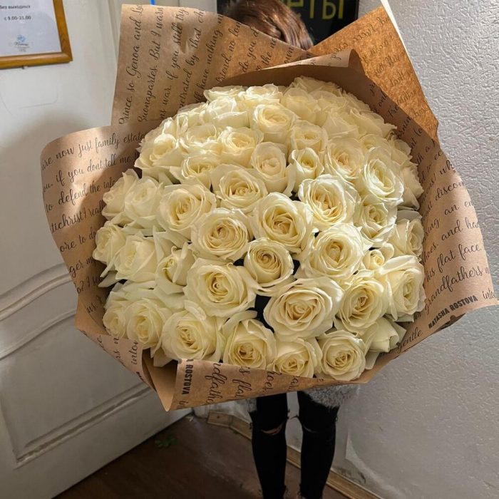 розы эквадор (70 см) – 51 шт.Крафт упаковка – 2 шт.Лента атласная – 1 шт.