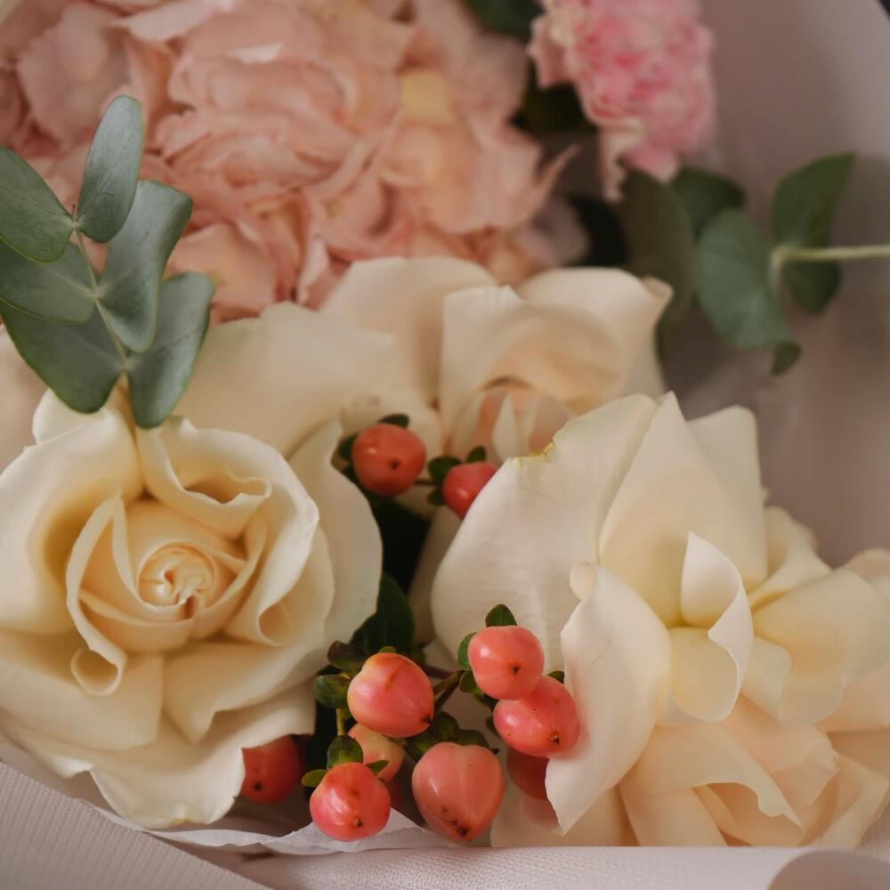Кустовые розы, Лизиантусы, Пионы, Розы