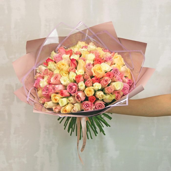 Букет из 101 розы нежный микс 35-40 см (Кения)