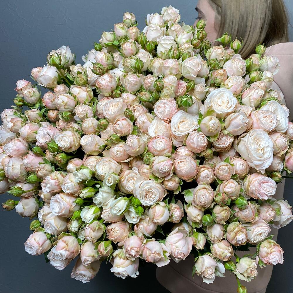 Лента атласная – 2 шт.Роза кустовая пионовидная – 35 шт.
