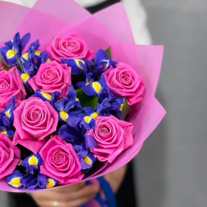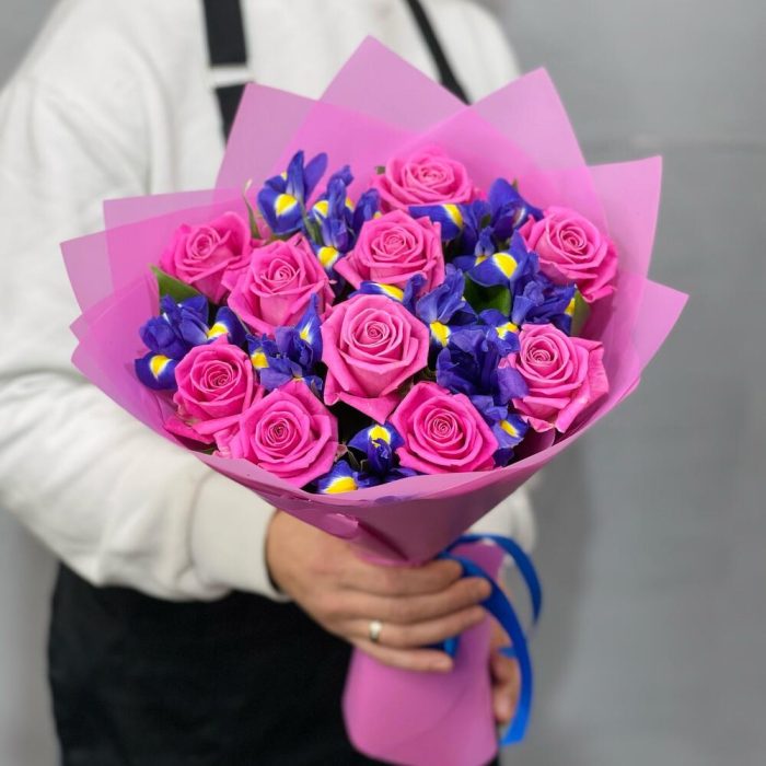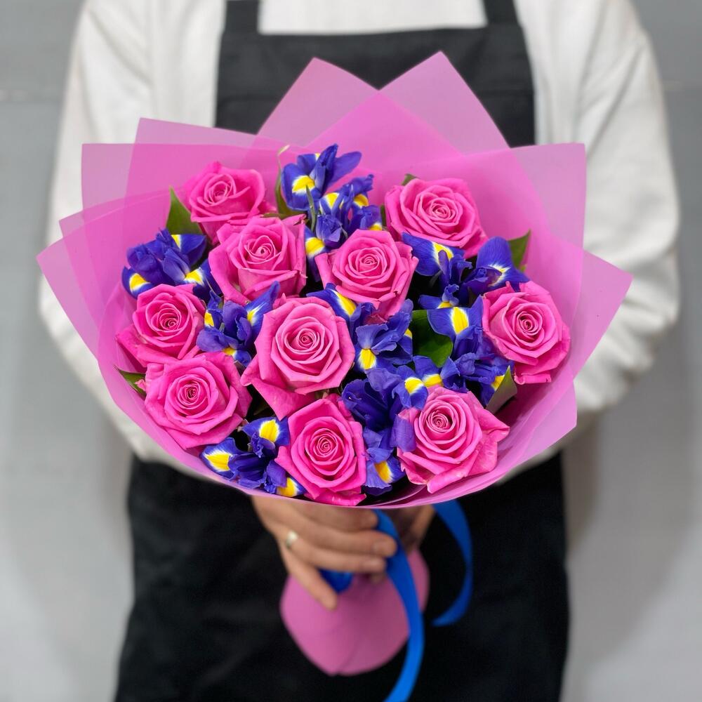 Букет из роз и ирисов . Розы. Ирисы