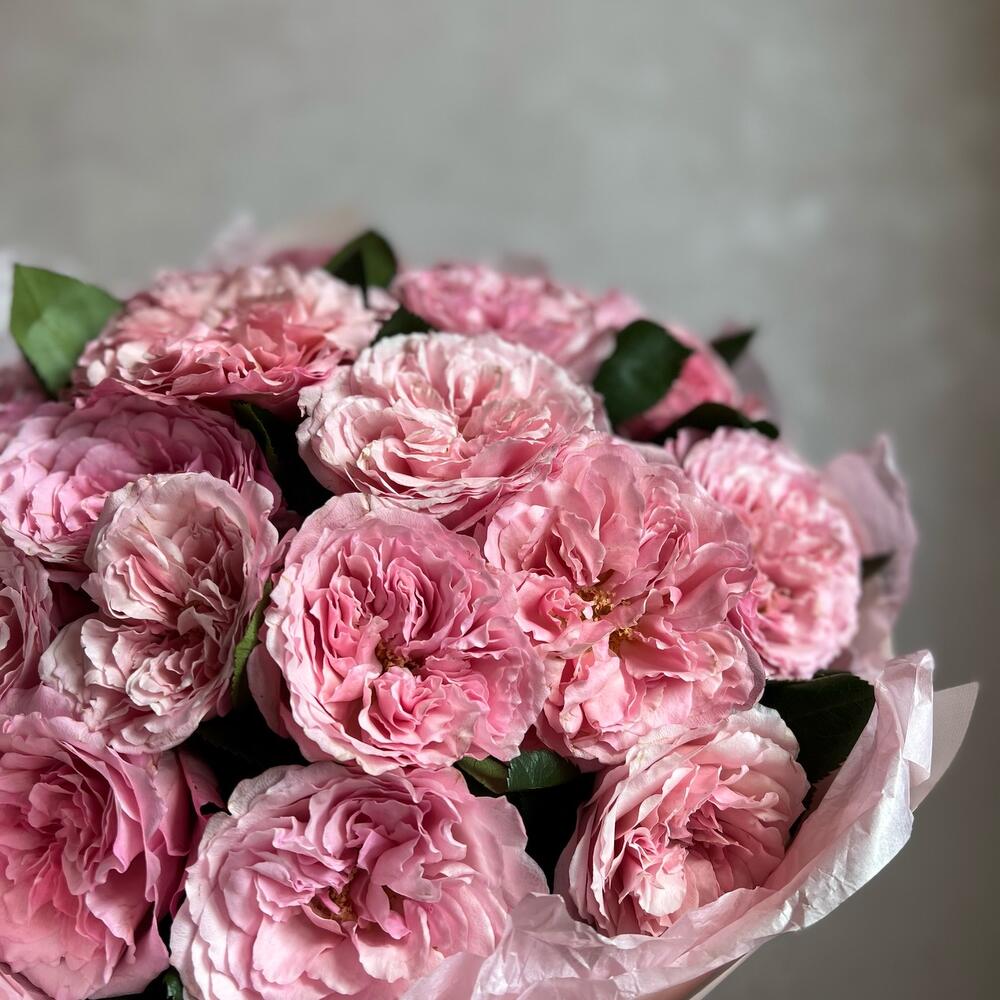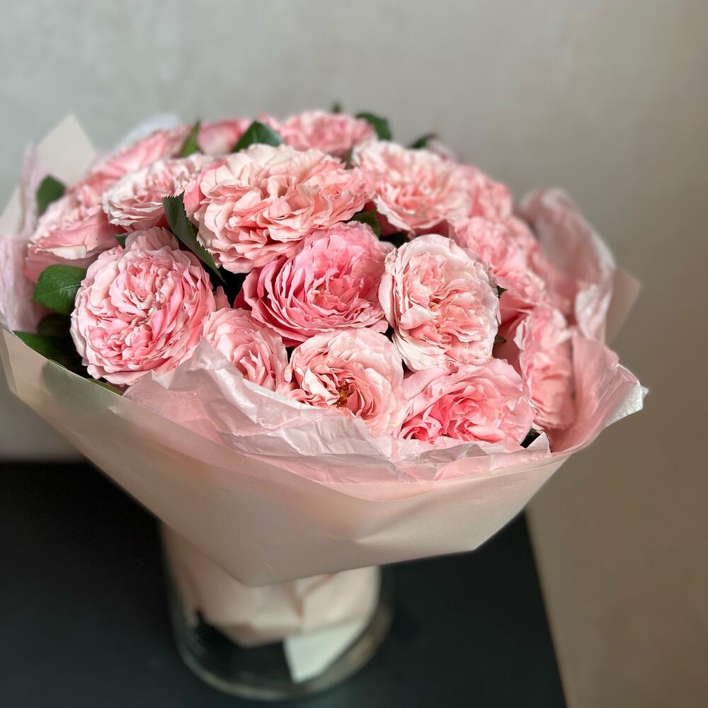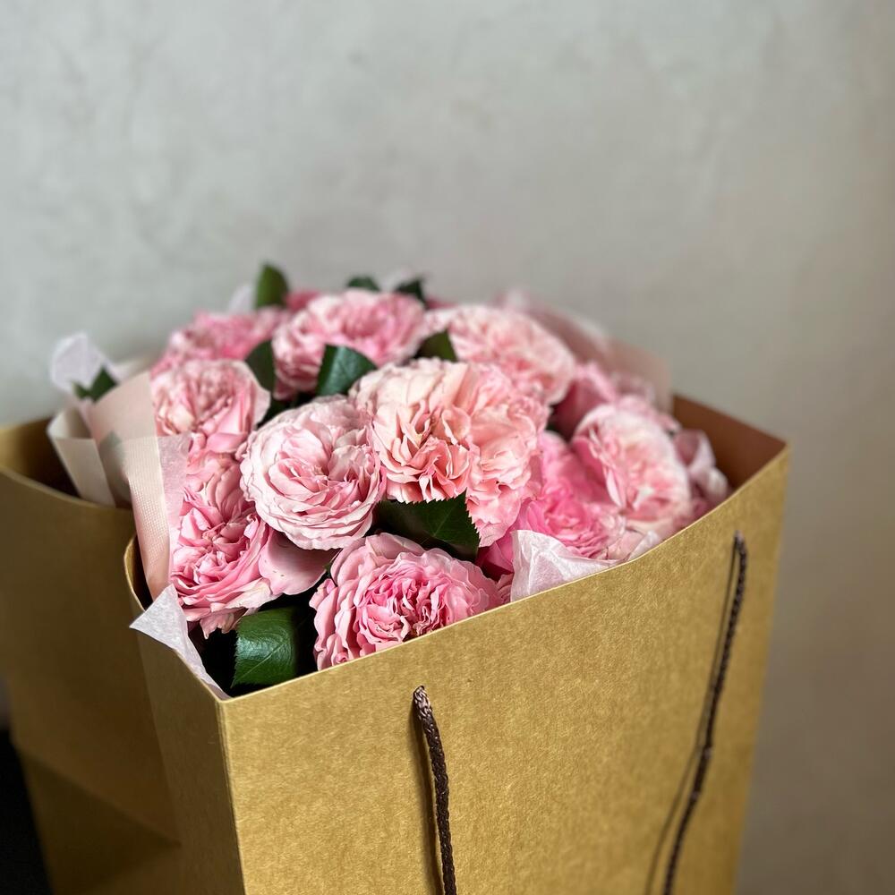 Атласная лента – 1 шт.декоративная упаковка – 1 шт.пионовидная роза mayra pink – 21 шт.