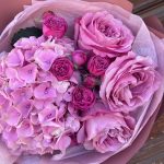 Букет с гортензией и пионовидными розами