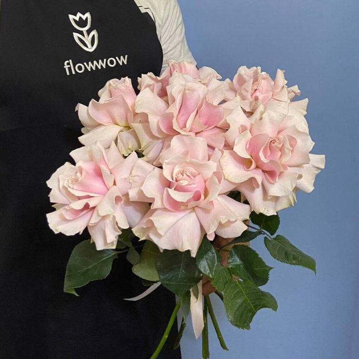 Французская роза – 7 шт.Лента атласная – 1 шт.