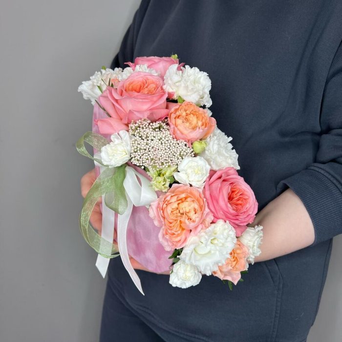 Лизиантус – 1 шт.Озотамнус – 1 шт.Диантус – 2 шт.Роза пионовидная кустовая – 1 шт.Роза пионовидная – 3 шт.Фисташка пучок – 1 шт.сердце декоративное – 1 шт.комплимент от polyanka – 1 шт.