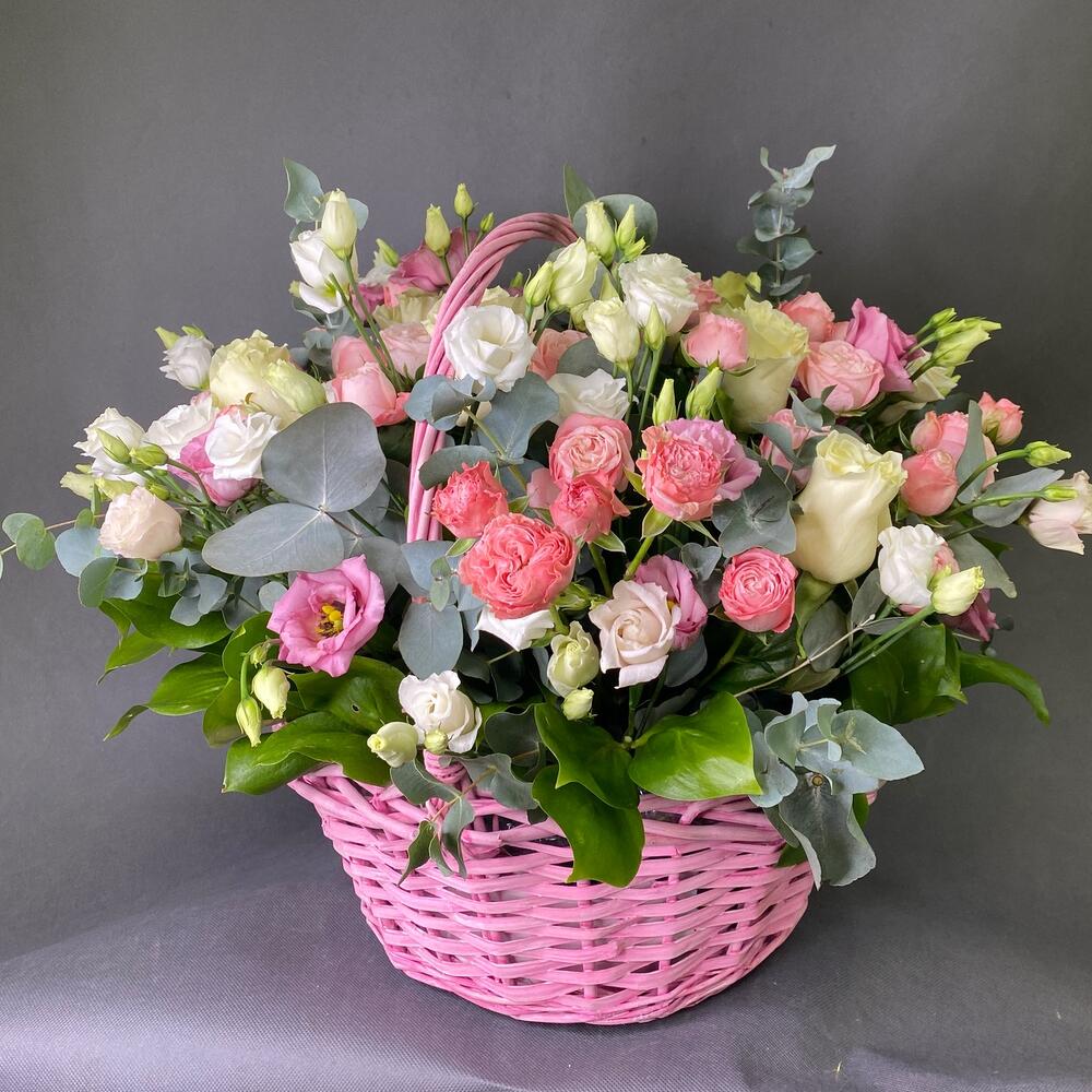 Корзина из пион роз и лизиантуса «Lady s»