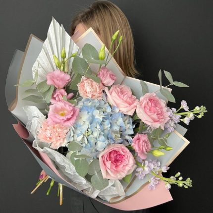 “Эвкалиптическая роскошь” гортензия и пионовидная кустовая роза