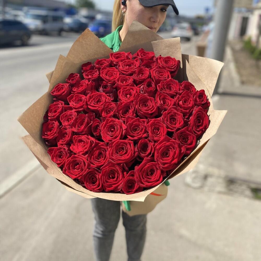 розы эквадор – 51 шт.Крафт дизайнерский – 3 шт.Лента атласная – 1 шт.
