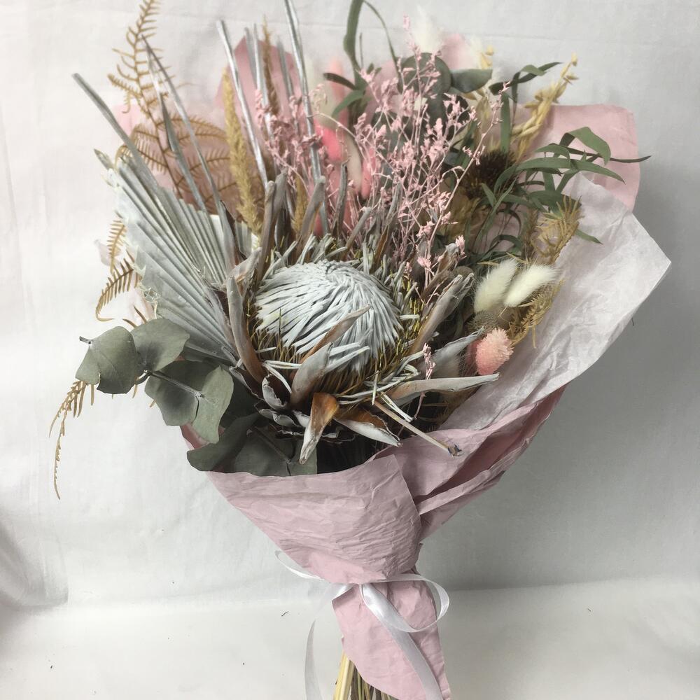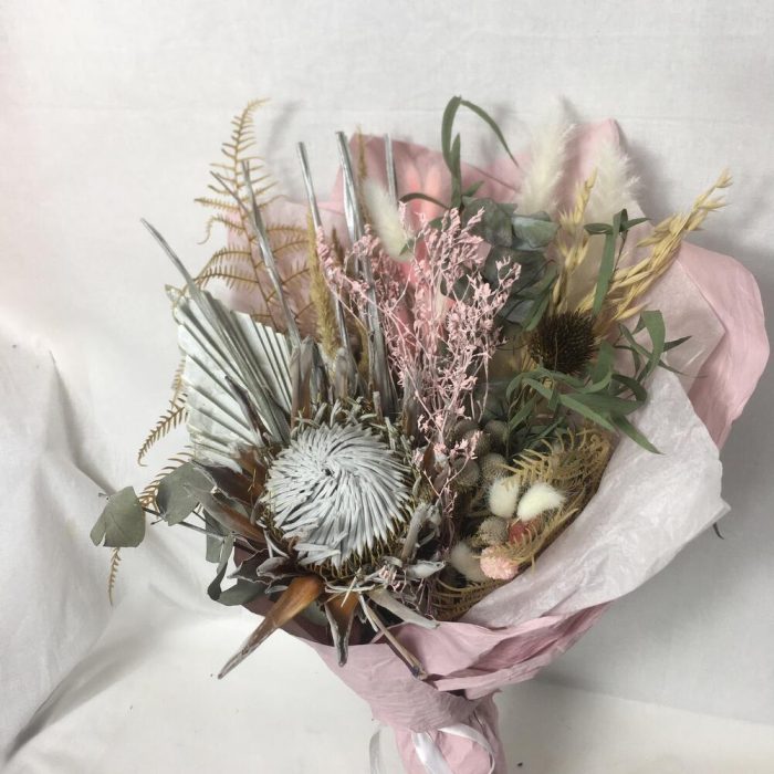 протея сухоцвет – 1 шт.папоротник стабилизированный – 1 шт.лимониум сухоцвет – 1 шт.Эвкалипт сухоцвет – 3 шт.Лагурус (сухоцвет) – 15 шт.бруния сухоцвет – 1 шт.папоротник сухоцвет – 1 шт.Колоски – 7 шт.Упаковка дизайнерская – 1 шт.